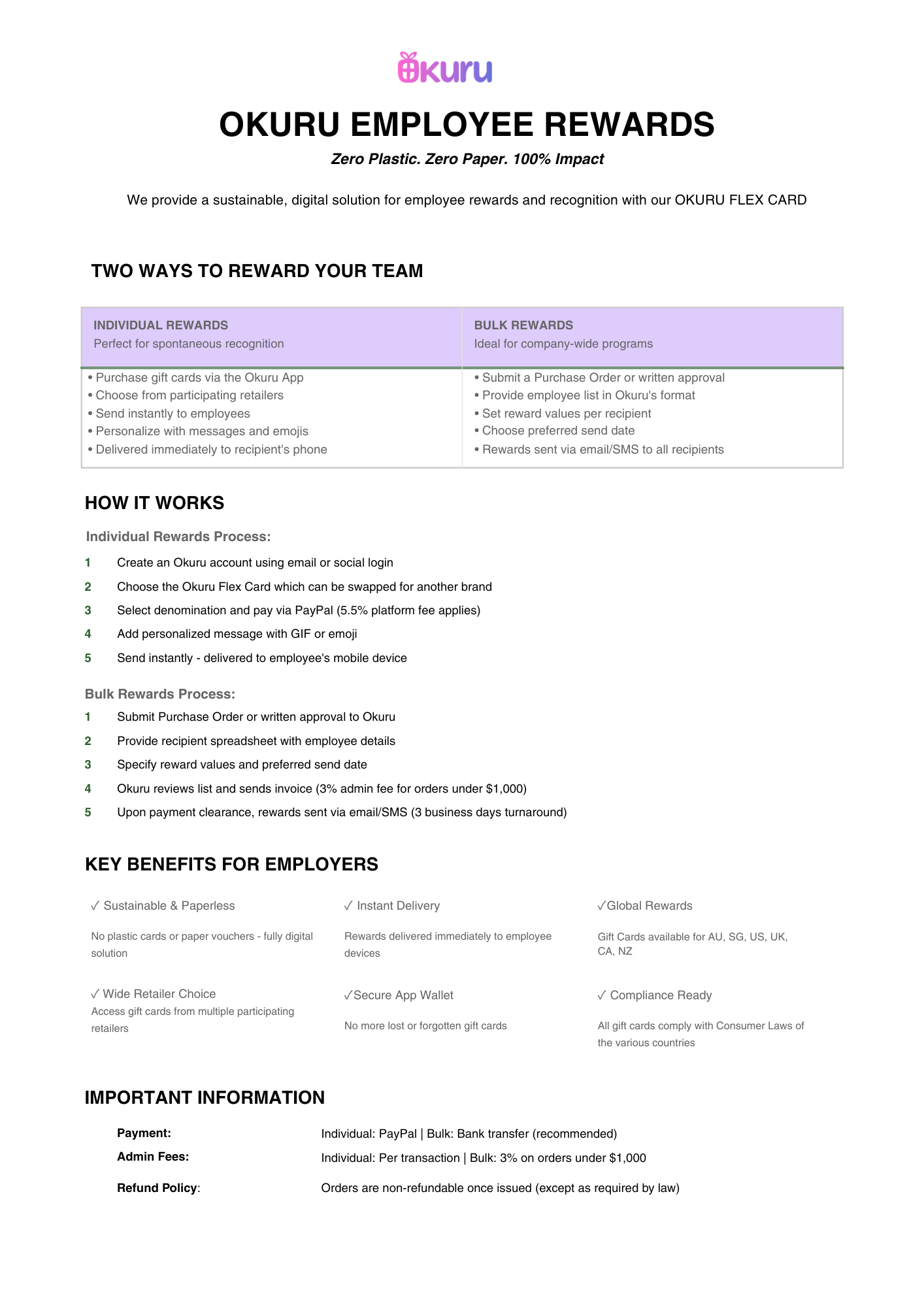 Okuru Bulk Rewards - How it works Get Started Today For individual rewards: Download the Okuru App | For bulk rewards: Contact grace@okuru.app Visit: www.okuru.app | Support: support@okuru.app